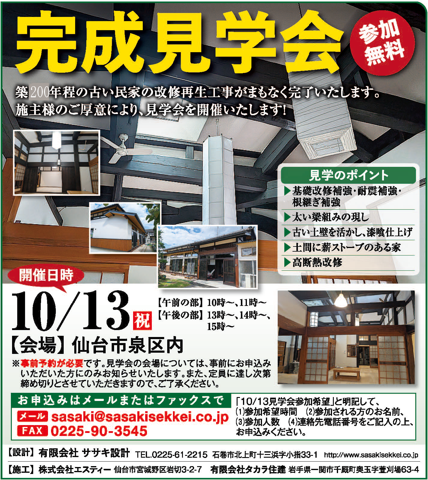 10月13日(月)に完成見学会を開催することになりましたのでご案内します。