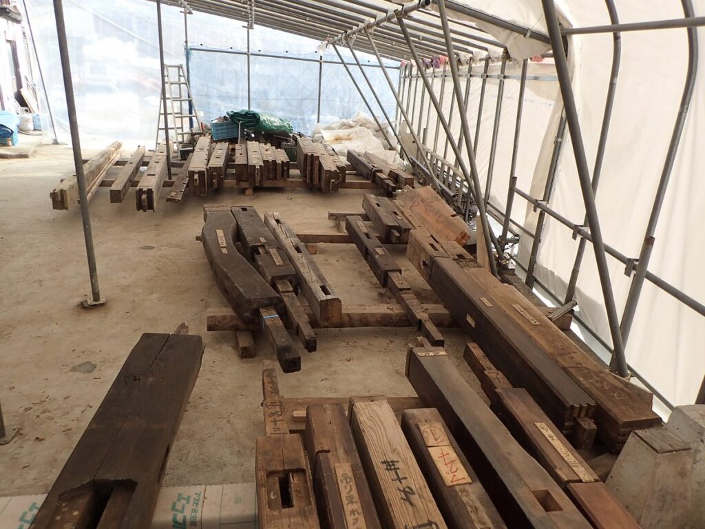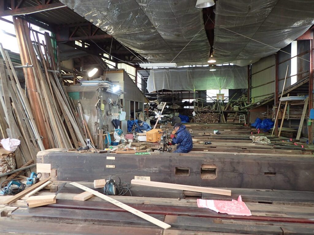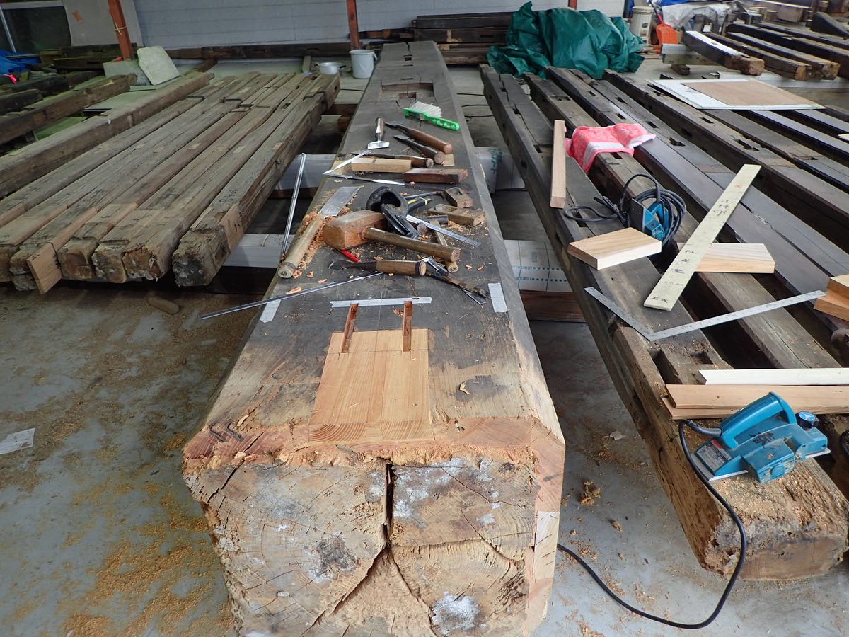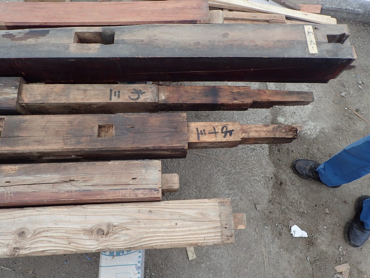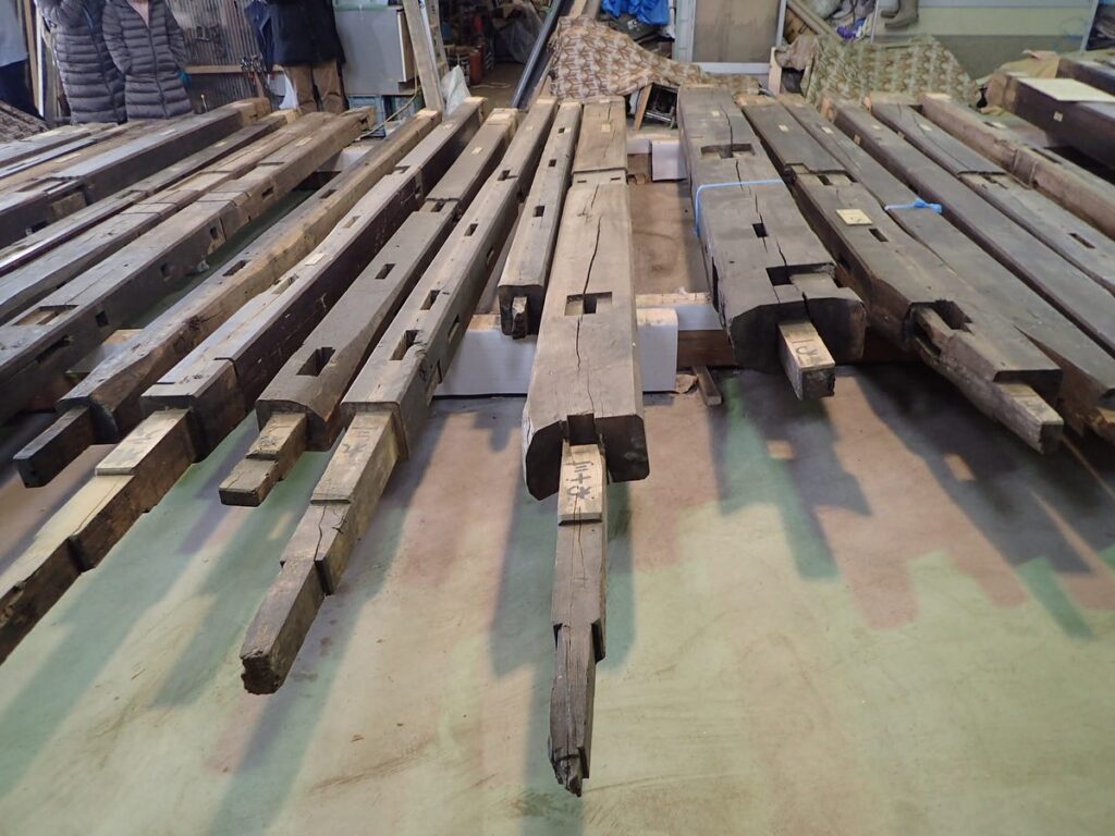 2026年2月3日 一関の古民家移築 ブログ 昨年春先に一関市藤沢町の大きな古民家移築再生前提に番付けして保存解体を済ませた解体材の、本格的な刻み加工前の施主様含めた現地確認で一関の加工場に先週行ってきました。 施主様の希望で貫下地に竹小舞土壁構造の足固め入れた石場建てでやりたいという、実施設計終える間際に大きな変更があった為です。 限界耐力構造計算との擦り合わせや納まり確認もありました。 最後辺りのお弁当は昼食用にカミさんが握ってくれたもので、私の元気の源です。感謝!